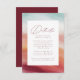 Stilvolle, moderne Hochzeitskarten mit Details in einem bordeauxroten, modernen Kalligrafieschrift mit abstraktem Aquarellhintergrund in Aqua-, Rosa-, Korallen-, Orange- und Bordeaux-Tönen. Personalisieren Sie die Aquarellhüllen-Karten, indem Sie Ihre Hochzeitsdetails in einem bordeauxfarbenen Text hinzufügen. Entworfen, um mit unserer farbenfrohen Abstrakten Wasserfarbensammlung zu koordinieren.
