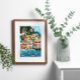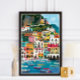 Farbenfrohe Amalfi Coast Beach Illustration Fotodruck