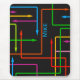 Geometrisches und technisch aussehendes Mauspad in schwarz, mit farbigen Pfeilen, mit scharfen Kurven. Personalisieren Sie den blauen Text für sich selbst oder als großartige Geschenkidee für Zuhause oder Arbeit.