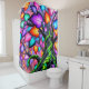 Dieser Duschvorhang hat ein farbenfrohes Blatt.