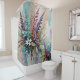 Farbenfrohe Blume auf blaubeige weiße Lavendel Duschvorhang
