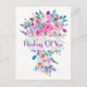 Kundenspezifische Postkarte "Denken von Ihnen": Hübsches Aquarellpinken, aquamarin-gelbes Blumenmotiv/Wenn Sie Hilfe bei der Platzierung oder Personalisierung benötigen, verwenden Sie bitte den Link "Dieser Designer kontaktieren" auf der rechten Seite dieser Seite.
