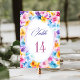 Farbenfrohe blumengeschmückte Tischnummer.