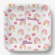 Farbenfrohe Boho Rainbow-Muster Geburtsname Pappteller