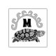 Ein farbenfroher Cumberland Schieber Schildkröte, im Stil eines lumpen Cartoon gemacht. Das Reptil ist von der Seitenansicht aus illustriert und zeigt das gelbe und schwarze Muster. Über der Schildkröte ist eine aufsteigende gelbe Sonne. Zwischen der Sonne und Schildkröte Muschel ist ein M. Der M ist kurz für Monogramm und kann für Ihren persönlichen Anfang angepasst werden.