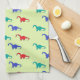 Farbenfrohe Dinosaurier-Muster auf grün Geschirrtuch