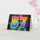 Die Vorderseite dieses aufregenden, lustigen und lebhaften Grußkartendesigns ist mit einem farbenfrohen, feierlichen Feuerwerk inspiriert, zusammen mit der Zahl "57" mit einem farbenfrohen Regenbogenmuster auf schwarzem Hintergrund. Im Inneren befindet sich eine personalisierte Begrüßungsnachricht, oder man könnte sie löschen und leer verlassen werden, wenn eine Nachricht von Hand geschrieben werden soll. Eine solche Grußkarte könnte vielleicht ein lustiger Weg sein, jemandes siebenundfünfzigsten Geburtstag zu würdigen, oder vielleicht das siebenundfünfzigste Hochzeitstag eines Paares oder ein anderes 57. Ereignis. [~Z0000342]