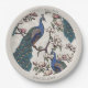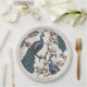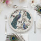 Diese farbenfrohen Peacocks Ivory Paper Teller verfügen über eine handgezeichnet blaue und aquamarine Pfauenillustrierung auf blühenden Magnolienzweigen in schwarzer Tinte. Diese individuell anpassbaren Teller sind mit einer eleganten Elfenbeingrenze konzipiert und eignen sich hervorragend für Hochzeiten, Brautpartys, Verlobungsfeiern, Jubiläen und elegante Anlässe. Persönlich mit Namen, Datum oder Veranstaltungsdetails für stilvolles Hochzeitsgeschirr und Party.