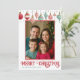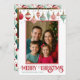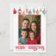 Mit dieser farbenfrohen Retro-Weihnachtskarte feiern Sie die Feiertage mit einem fröhlichen Design Vintag inspirierter Ornamente in Rot, aquamarin, Gold und Rosa. Auf der Vorderseite der Karte befindet sich ein individualisierbares Foto, das von festlichen Bausteinen gesäumt ist. So können Sie Ihr Foto in der Familie präsentieren. Unten, ein kühn "Frohe Weihnachten" Gruß fügt eine warme Touch, zusammen mit Raum, um Ihren Familiennamen und das Jahr zu personalisieren. Auf hochwertigem Karton bedruckt, zeigt die Rückseite der Karte ein koordinierendes Ornament-Muster mit vier weiteren Fotos, das den Retro-Charme verbindet. Diese Karte ist sowohl nostalgisch als auch modern und eignet sich hervorragend, um Ihnen herzliche Urlaubswünsche zu vermitteln.