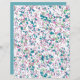 Klassisches, unterhaltsames und zeitgenössisches Scrapbook-Blatt mit hellblauem, rosa, pastellgrün und lavendelviolettem Terrazzo-Mosaik-Kunstmuster-Design auf weißem Hintergrund.