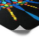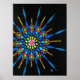 Mein farbiges Gemälde aus Edelsteinen in einem runden Mosaikmuster auf schwarzem Hintergrund ist auf Plakaten gedruckt. Die Formen bestehen aus Diamanten und Kreisen. Die Farbtöne Gelb, Blau, Rot, Orange und Aqua.