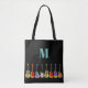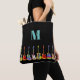 Farbenfrohe Gitarrenmuster auf schwarzen, maßgeschneiderten Taschen aus Monogramm, ein perfekter Ort, um Ihre Musikunterrichtsbücher und Idee für Musiklehrer und Schüler zu tragen. Vollständig anpassbar mit der Monogramm-Initialvorlage. Jeder Gitarrist oder Musiker wird Ihnen sagen, dass Sie nie zu viele Gitarren haben können. Dieses bunte Gitarrendesign feiert die Energie und Vielfalt dieses wunderbaren Musikinstruments. Das perfekte Geschenk für Gitarristen, Musiker und Musikliebhaber. Psychedelic Gitarre Pop Art Original-Kunstwerk von Catherine Sweetman
