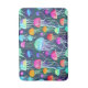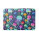Dies ist ein Muster von bunt leuchtenden Quallen auf einem dunkelblau-grünen Hintergrund.