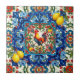 Farbenfroher, lebendiger Hahnenvogel, mediterrane Fliesen, Zitronenkunst