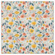 Ein lebendiger, handgemalter Stoff aus blumengeschmückter Blume. Ein helles, prächtiges Design aus gelben und rosa Blume mit blauem grünem Blattwerk und roten Beeren. Ein schönes sommerliches Ambiente. Ideal für Wohngestaltung-, Crafting-, Näh- und Steppprojekte.