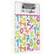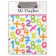 Dies ist die personalisierte Zwischenablage für individuelle Name, die farbenfrohe handgezeichnete Zahlen und mathematische Symbole enthält. Es ist ein großartiges Geschenk für Mathematiklehrer