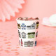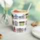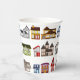 Farbenfrohe Häusermuster schmücken diese Papiertasse, die sich perfekt für die Getränke in Ihrem nächsten Haus Erwärmung Party oder Immobilien's Open House eignet.