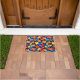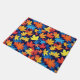Farbenfrohe Herbstüberreste im dunkelblauen Hinter Fußmatte