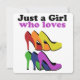 Farbenfrohe High Heels, dieses Design bietet farbenfrohe High Heels und Text-Sprichwort "Just A Girl that Lieben Heelse".