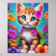 Farbenfrohe Kätzchen und Blume Kinderwandplakat Poster