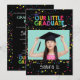 Feiern Sie den großen Meilenstein Ihres Kindes mit dieser lustigen und farbenfrohen Einladung zum Abschluss! Mit einem spielerischen schwarzen Hintergrund mit hellen Konfetti-Stars, mutigen bunten Schriftzeichen und Platz für ein Foto, fügt dieses Design Ihrem kleinen Absolvent eine fröhliche Touch hinzu.