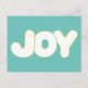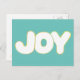 Genießen Sie das Wort Joy in blau, grün und orange, auf Postkarten gedruckt.