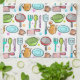 Küche / Essgeschirr und Geschirr Doodles in bunten Mustern.