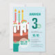 Farbenfrohe Kuchen & Regenbogen Kinder 3. Geburtst Einladung