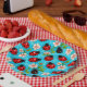 Farbenfrohe Ladybug-Muster mit Blume Pappteller