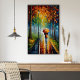 Das bunte Poster einer Welt, in der Herbst-Blätter im Regen tanzen und die Straßen mit lebhaften Farben bemalt. In diesem Poster sehen wir einen regnerischen Tag, an dem sich alles ein wenig einsam, aber auch gemütlich anfühlt. Eine Frau, die in Regen geht und Regenschirm auf dieser einsamen Straße hält. Es ist wie ein Geheimabenteuer im Regen. Sie können die Größe des Posters ändern.