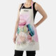 Eine Schürze mit einem schönen Bild. 3 farbenfrohe Macarons, rosa, grün und blau, mit einem Blumenstrauß aus extravaganter Rose und einem Pink-Aquarell. Auch köstlich und stilvoll! Hellgelber Hintergrund. Personalisieren mit einem Namen.