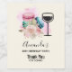 Event Flasche Etiketten mit einem schönen Bild. 3 farbenfrohe Macarons, rosa, grün und blau, mit einem Blumenstrauß aus extravaganter Rose und einem Pink-Aquarell dahinter. Eine Weinsilhette neben dem süßen Dessert. Auch köstlich und stilvoll! Hellgelber Hintergrund.