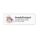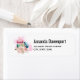 Adressetiketten mit einem schönen Bild. 3 farbenfrohe Macarons, rosa, grün und blau, mit einem Blumenstrauß aus extravaganter Rose und einem Pink-Aquarell dahinter. Auch köstlich und stilvoll!