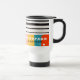 Farbenfrohe Mid Century Abstrakte Personalisierte Name Travel Mug weist ein farbenfrohes Streifen-Muster auf, mit Ihrem personalisierten Namen in einem einfachen schwarz-weißen Skript auf einem abstrakten Hintergrund. Personalisieren Sie den Text durch Bearbeiten in den bereitgestellten Textfeldern. Perfektes Geschenk zum Geburtstag, Weihnachten, Muttertag, Schwester, Cousin, beste Freunde und vieles mehr. Entworfen von ©Evco Studio www.zazzle.com/store/evcostudio