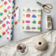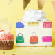 Dieses bunte Geschenkpapier hat ein Muster von Geldbörsen in verschiedenen Stilen und Farben. Der Hintergrund ist blassgelb. Ideal für Fans von mädchenhaftem Design und Mode.