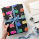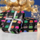 Dieses bunte Geschenkpapier hat ein Muster von Geldbörsen in verschiedenen Stilen und Farben.Der Hintergrund ist schwarz. Ideal für Fans von mädchenhaftem Design und Mode.