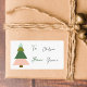 Feierliche Weihnachten zu/von Etiketten, die eine Abbildung eines Weihnachtsbaumes in den Tönen grün und rot pink. Zu & von werden in einem whimsical grünen Skript mit Platz zum tippen oder handschreiben Ihrer Namen angezeigt.