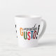 Mit dieser Tasse, die farbenfroh "Mucho Gusto" (Spanisch für "nice to meet you") ist, kann man das Eis auf weißem Grund brechen. Layout und Kopie © W.H. Sim. Weitere Informationen unter zazzle.com/wordsofwhimsy