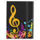 Ein ideales Geschenk für den Musikliebhaber oder Musiker mit einem auffälligen Design mit geraubten musikalischen Noten und einem großen Treppenschacht in den Farben des Regenbogens auf einem zeitgenössischen schwarzen Hintergrund.