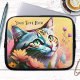 Laptop-Ärmel mit einem bunten Bild eines niedlichen Kätzchens mit Blume. Der Text ist optional.