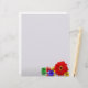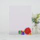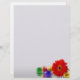 Happy Oaster Illustration mit farbigen, folienumhüllten Schokoladeneiern und einer roten Gerbera-Blume auf einem hellgrauen Hintergrund.