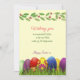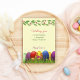 Helle, farbenfrohe Ostereier in grünem Gras auf gelbem Hintergrund. Bitte klicken Sie auf die Schaltfläche Personalisieren, um es mit Ihrem Text anzupassen.