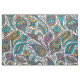 Farbenfrohe ethnisch verzierte Paisley-Muster auf weißem Hintergrund.