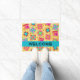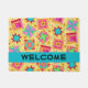 Zeigen Sie Ihre Quilt-Liebe und empfangen Sie mit diesem Quilt-Art-Dotat, das sich hervorragend für Zuhause oder ein Quilt-Business eignet. Das Wort "Willkommen" ist auf einem türkisfarbenen aquamarinen blauen Streifen und kann leicht an ein anderes Wort oder einen anderen Namen angepasst werden. Diese originelle Quiltkunst kombiniert beliebte Quiltblöcke wie Blockhütte, Sterne und Pinwheels sowie einzigartige Blöcke zu einem Quilt-Design mit lebhaften und dynamischen Farben auf einem warmen, lebhaften gelben Hintergrund. Die Blockfarben Grün, Gelb, Rosa, Orange, Rot und Türkis sind blau. Kleine gelbe Blumen sind im Hintergrund zwischen den Blöcken. Das ist ein großartiges Geschenk für einen Quilter- oder Quilt-Liebhaber. Vollständig anpassbar für eine einzigartige von einer freundlichen Türmatte. Diese Quiltkunst stammt aus dem Stoff- und Quiltdesigner Phyllis Dobbs.