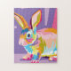 Die Farbtöne Rosa, lila und Orange vereinen sich in diesem wunderschön lebendigen Pop-Kunstporträt eines bezaubernden Hasen, der zugleich modern und trendig ist.