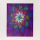 Einzigartiges Fraktal-Kunstbild, farbenfroh und dekorativ. Ein psychedelisches, gemustertes, buntes Blütenbild, erstaunlich mit allen kühnen Farben. Design für Ihr ungewöhnliches Fantasy-Blume-Puzzle und mehr.