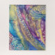 Die abstrakte Kunstform erinnert an eine abstrakte Aquarellfarbe, die durch den Einsatz von "Alkoholfarben" erreicht wird. Die Elemente, die das Auge am meisten in diesem Stück fassen, sind die Punkte. Reihen und Cluster und Linien von ihnen! Dieses farbenfrohe Stück besticht durch Blues, Farbtöne, Pinsel und Akzente des schimmernden metallischen Goldes.