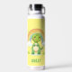 Farbenfrohe Rainbow-Dino mit Kindernamen Trinkflasche