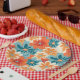 Lassen Sie sich von unserem farbenfrohen Retro Groovy Floral Hippie-Muster begeistern! Dieses helle und fröhliche Muster erinnert an die 70er Jahre und zeichnet sich durch farbenfrohe Blume, Gänsebläser und ein Retro-Ambiente aus, das sich perfekt eignet, um jedem Raum einen Pop Farbe zu verleihen.