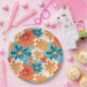 Farbenfrohe Retro Groovy Blumenmuster Pappteller